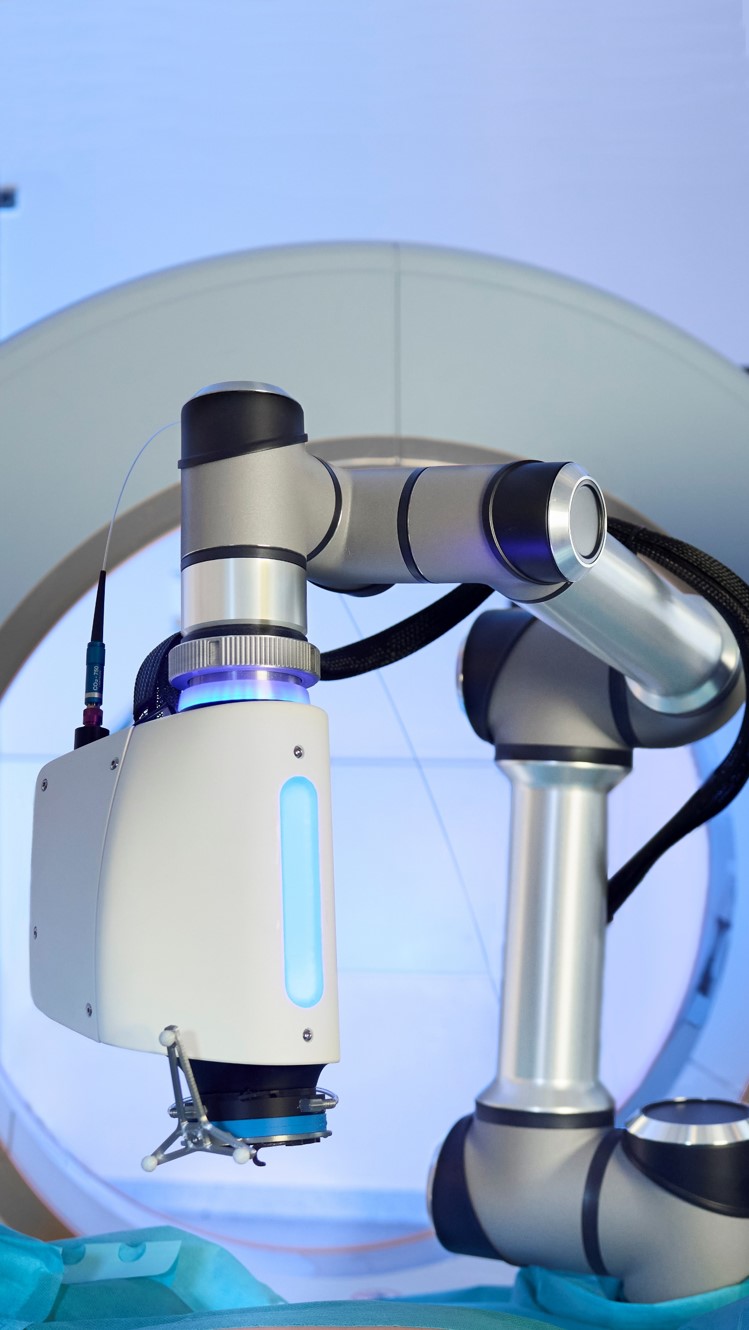 Neurochirurgische Eingriffe an motorischen, kognitiven oder sensorischen Hirnregionen werden teilweise bei vollem Bewusstsein durchgeführt. Die Patientinnen und Patienten können dabei den Anweisungen des Ärzteteams folgen. Eine Hürde bei solchen Operationen am wachen Patienten ist die mechanische Öffnung des Schädels durch Sägen oder Fräsen. Sie wird von den Operierten als stark traumatisierend empfunden. Das Fraunhofer-Institut für Lasertechnik ILT in Aachen entwickelt ein neuartiges Verfahren, das den Schädel nahezu lautlos und schonend mit Laserpulsen öffnet. In einem digital gesteuerten und sensorisch überwachten Prozess tragen die etwa 100 Nanosekunden kurzen Pulse das Knochengewebe in winzigen Portionen ab, ohne es zu erhitzen. Das Verfahren hinterlässt saubere, farblich unveränderte Schnittkanten, an denen der Knochen nach der Operation schnell wieder zusammenwächst. Damit der Laser den Schädel öffnet, ohne das darunter liegende Gewebe zu treffen, wird ihm ein Messstrahl der optischen Kohärenztomographie (OCT) überlagert. Dank dieser Inline-Sensorik haben die Chirurgen genau im Blick, wie der Abtrag des Knochengewebes voranschreitet - bis sie den lautlos gelösten, kreisrunden Knochendeckel entfernen und mit dem eigentlichen Eingriff am Gehirn beginnen können.